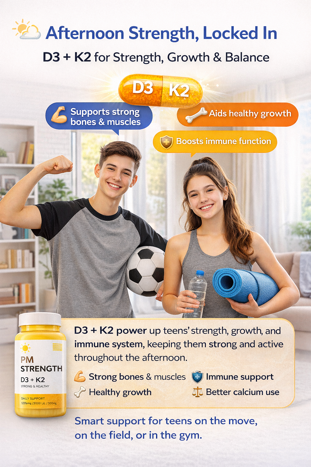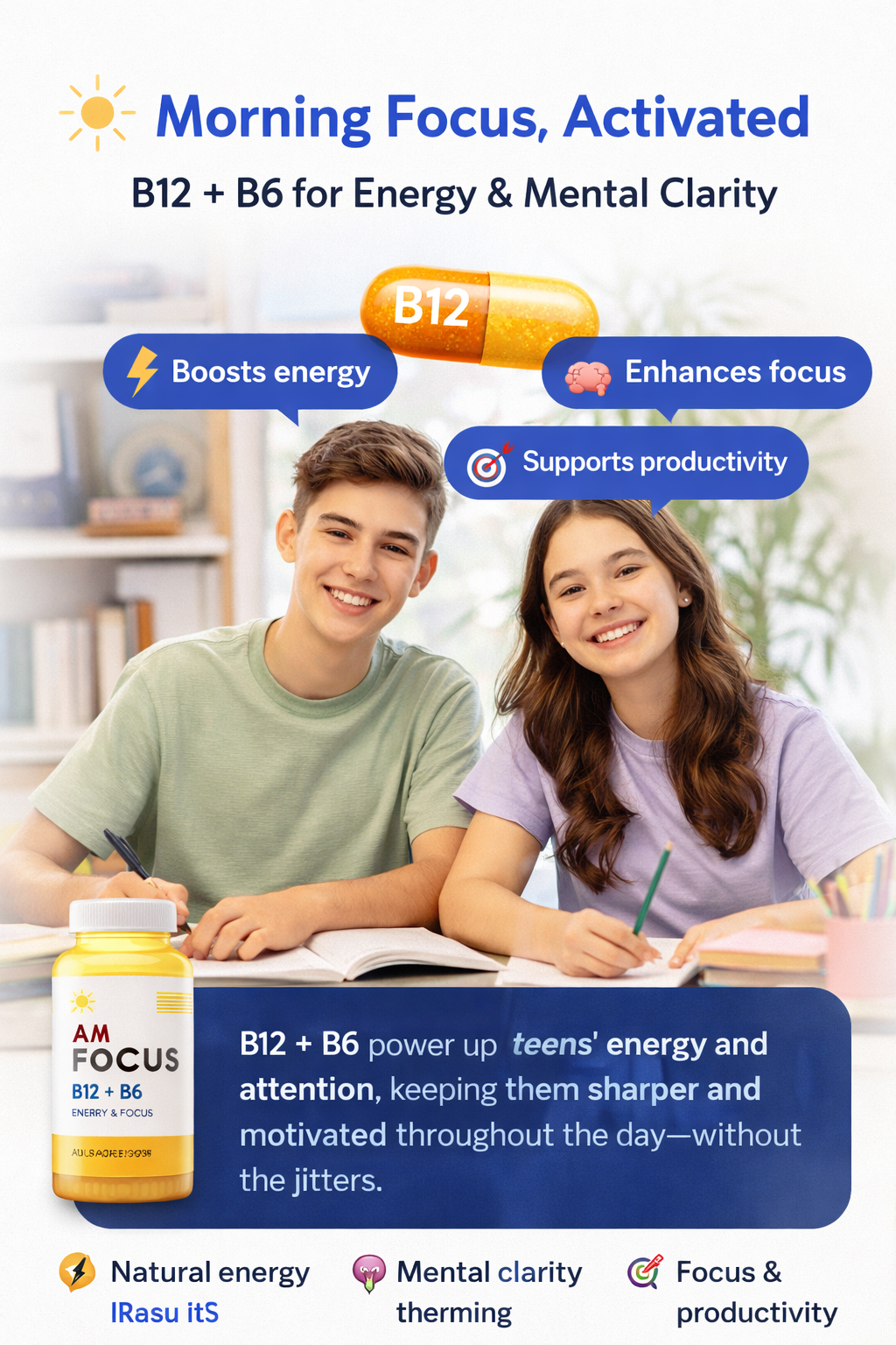 Vitamin B12 plays a key role in turning food into usable energy, helping teens feel alert, motivated, and ready to take on the day—without the jitters. It also supports healthy brain function, which means better concentration during classes, studying, and activities.